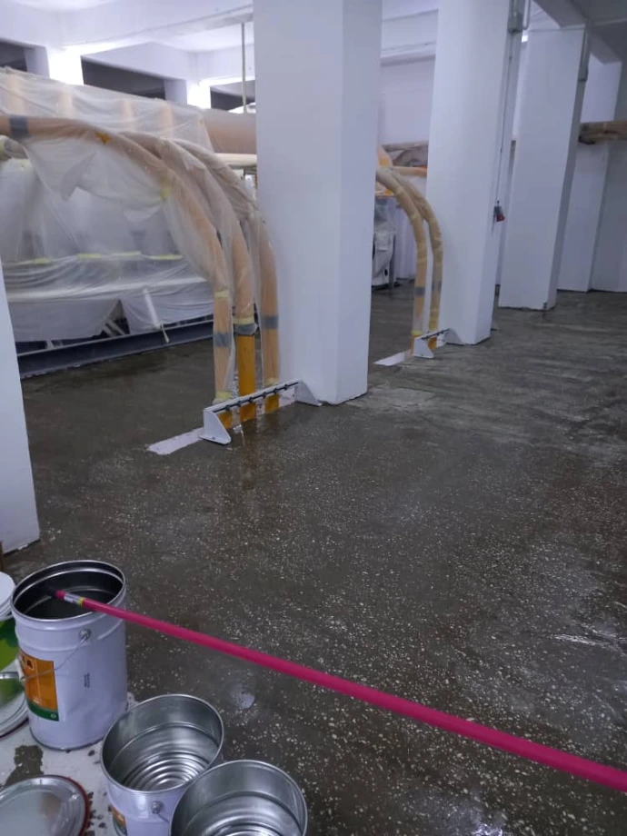 تنفيذ أرضيات مقاومة للصدمات والمواد الكيميائية، مثالية للمصانع والمستودعات والمواقف.